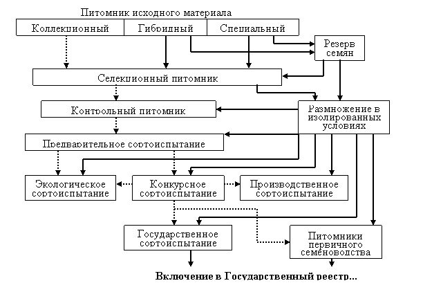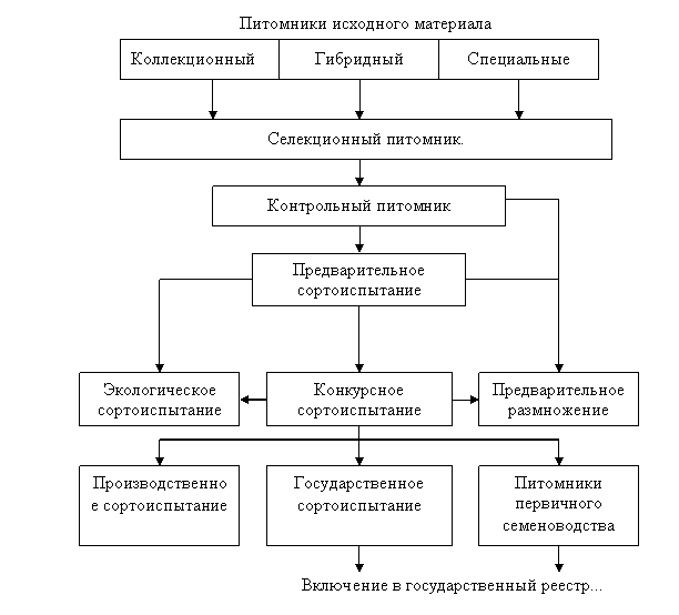 Предварительное размножение. К моменту передачи нового сорта в государственное сортоиспытание оригинатор должен накопить достаточное количество семян, необходимых для рассылки на несколько государственных сортоучастков и для производственного сортоиспытания. Так, семян зерновых и зерновых бобовых культур необходимо 0,5—2 т. А в случае включения сорта в государственный реестр потребуется большое количество его семян для организации сортосмены. Поэтому, начиная с предварительного сортоиспытания (а в отдельных случаях и с контрольного питомника), организуют предварительное размножение самых выдающихся сортов.