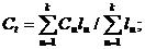 Каждое полное пересечение состоит из k (k ≥ 1) секционных проб с содержанием рудного компонента Cu и длиной секции lu = 1, 2, ..., k. Поэтому средневзвешенное содержание рудного компонента по каждому пересечению Ct и мощность по пересечению Mt, t = 1, 2, . . . , N определяются как: