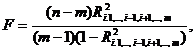 критическое значение F-распределения с m-1 и n-m степенями свободы. Если F > Fa, m-1,n-m, то гипотеза H0 отклоняется, в противном случае - принимается как подтвердившаяся.