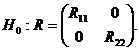 Нулевую гипотезу, предполагающую отсутствие линейной связи между подмножествами случайных величин X(1) и X(2), запишем: