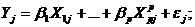 Здесь {Yj} - значения зависимой переменной; {Xij} - значения независимых переменных; {ej} - случайные отклонения (их появление чаще всего связывают с действием факторов, не учтенных измерениями независимых переменных); {bi} - неизвестные коэффициенты регрессии, оценки которых {bi}отыскиваются по выборочным данным.