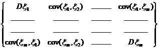Ковариационная матрица - многомерный аналог дисперсии одномерной случайной величины. Характеризует рассеивание значений и зависимости между случайными величинами m-мерной совокупности x=(x1,...,xm). Ковариационная матрица m-мерной случайной величины x имеет вид: