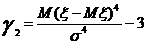 Эксцесс нормального распределения обычно рассматривается как эталон, с которым сравниваются эксцессы других теоретических распределений. Для нормального распределения величина M(ξ-Mξ)4/σ4 равна трем, поэтому формула, определяющая значение показателя эксцесса, имеет вид: