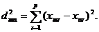 - обычное евклидово расстояние между объектами Pmи Pn, то hii=0 для всех i, поэтому