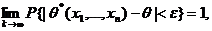Состоятельность. Пусть q*(x1),…, q*(x1,…,xn) - последовательность оценок полученных по выборкам объема k=1, 2, … ,n. Такую последовательность называют состоятельной, если
