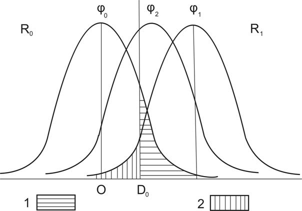 , отвечает области находящейся на рисунке под кривой j0(t) в области R1. Обозначив вероятность ошибки первого рода, соответствующую критическому значению D0, через a, выразим ее в рассматриваемом случае следующим образом: