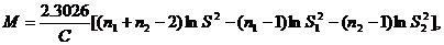 - истинные дисперсии для первого и второго объектов. Для критерия Бартлета условия применения те же, что и для критерия Фишера. Приведем упрощенную схему применения критерия Бартлета. Вычисляется величина: