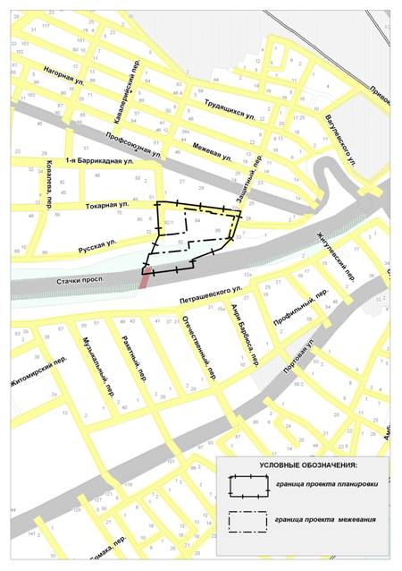 границ проекта планировки территории квартала: ул. Токарная – пер. Защитный – пр-кт Стачки – пер. Медный, площадью 3,03 га, и проекта межевания части территории квартала: ул. Токарная – пер. Защитный –