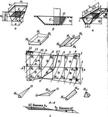 Рис. 5.2. Схемы определения объемов земляных работ: