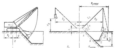 Для ведения продольной разработки параметры экскаватора должны удовлетворять следующим условиям: