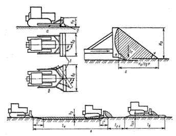 5.3.2. Технология разработки грунта бульдозерами. Способы разработки, схемы рабочих перемещений и их характеристики