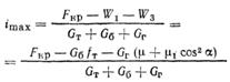 где W1 — дополнительное тяговое сопротивление передвижению от веса рабочего оборудования бульдозера; W3 — сопротивление от перемещения призмы грунта перед отвалом; W5— дополнительное сопротивление от составляющей силы тяжести трактора, оборудования бульдозера, грунта при работе бульдозера на негоризонтальных участках.