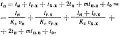 где tн, tг. х, tхх, tП, tп. п., t0 — соответственно продолжительности резания грунта, перемещения грунта, обратного (холостого) хода, одного поворота на 180° (10...20 с), одного переключения скорости (5 с), опускания отвала в рабочее положение (1...2 с); т — число переключений скоростей трактора в течение одного цикла; lн, lг. х. — длины путей резания грунта и перемещения к месту укладки, м; vН, vГХ, vх. х — скорости движения бульдозера соответственно при резании грунта, перемещении грунта и обратном ходе, м/с; кv — коэффициент, учитывающий снижение скоростей по сравнению с расчетной конструктивной скоростью трактора.