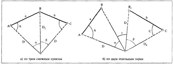 При выборе комбинаций углов предпочтение следует отдавать наименее удаленным пунктам. При этом: