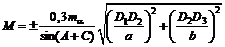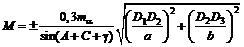 Средние квадратические погрешности планового положения глубин (в метрах) при определении их места обратными засечками с катера двумя секстанами рассчитываются по формулам:
