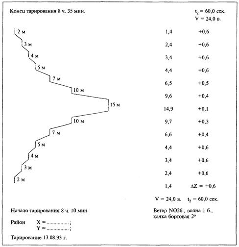 Пример записи тарирования и расчета суммарной поправки эхолота |