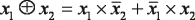 Операция, выполняемая таким элементом называется сложение по модулю два и обозначается плюсом в кружочке. В виде уровнения функция записывается так: X1⊕X2. Читается это, как "либо икс один, либо икс два". Обозначение элемента ИСКЛЮЧАЮЩЕЕ-ИЛИ следующее: