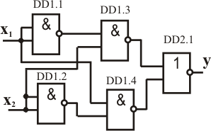 Для пущей наглядности составим схему из базисных элементов (И-НЕ, ИЛИ-НЕ).