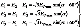 э. д.с. на выводных клеммах синхронизации, представляющие разность соответствующих фазиых э. д.с, определяются следующими соотношениями: