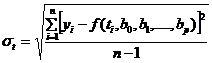 Находятся разности yi= tу– f(t) и подставляются в формулу для определения ошибки
