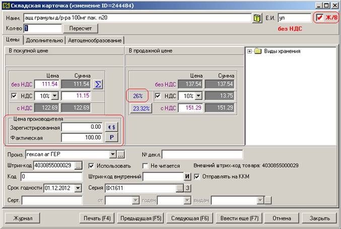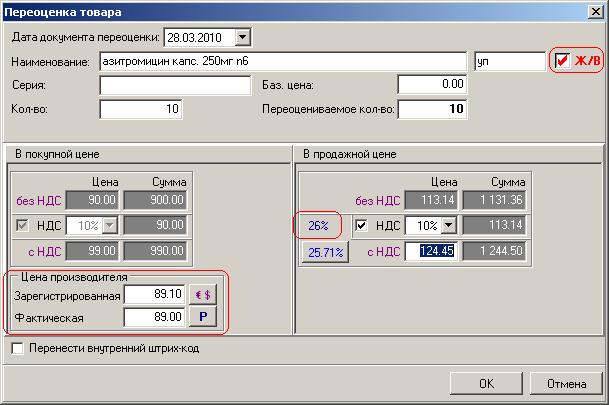 ). Т. к. здесь сразу же можно заполнять цену производителя, менять признак ЖВ и производить переоценку.