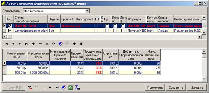 Добавлены новые возможности в автоценообразование (см. рис.2) и настроены новые схемы (см. рис.3). Новая схема называется ЖНВЛС 2010.