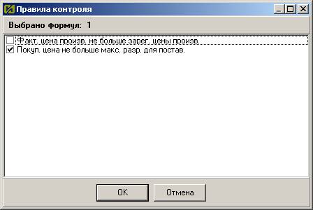 2. Дополнительный контроль. В новой схеме будет настроено правило для контроля (см. рис.4) «Наценка поставщика не превышает максимальный процент наценки поставщика, установленный в схемах». Правило «Факт. цена произв. не больше зарег. цены произв.» отключаем в связи с тем, что такие случаи могут встречаться. Но в формуле образования цены заложено, что за основу берется минимальная из фактической и зарегистрированной цены.