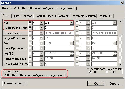 1.Проверяем соответствие признаков ЖВ в складских карточках и справочнике товаров.