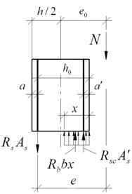 Неизвестную высоту сжатой зоны бетона находят из уравнения равенства нулю суммы проекций всех нормальных усилий на продольную ось элемента: