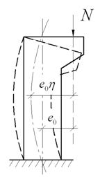 Гибкий внецентренно-сжатый элемент под влиянием момента прогибается, вследствие чего начальный эксцентриситет eо продольный силы N увеличивается (рис. 48). При этом возрастает изгибающий момент, и разрушение происходит при меньшей продольной силе N.