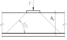 Продавливание может возникнуть в конструкциях, когда к ним приложена нагрузка на ограниченной площади. Продавливание происходит по боковой поверхности пирамиды, грани которой наклонены под углом 450 (рис.50). Продавливанию сопротивляется бетон, работающий на срез с расчетным сопротивлением, равным Rbt. Очевидно, что чем выше класс бетона и чем больше площадь боковой поверхности пирамиды, тем выше сопротивление продавливанию.