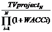 TVprojectN – заключительная стоимость (заключительный денежный поток) по проекту, приведённый к последнему году прогнозного периода;