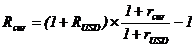 Перевод ставки дисконтирования для инвестиций в долларах США[5] в ставку дисконтирования для инвестиций в итоговой валюте денежных потоков осуществляется по следующей формуле:
