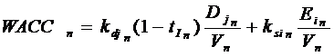 WACCn – прогнозная средневзвешенная стоимость капитала Получателя средств в году n;