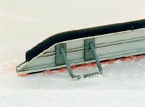 Бортики не должны быть прикреплены ко льду, и должны плавно скользить при прикосновении к ним. Верхний край бортика должен иметь защитный слой из резиновой ленты или аналогичного материала. Бортики в зоне замены игроков имеют красный цвет. Рисунок 1