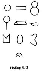 При низком уровне дети фактически не понимают задачу: они или рисуют рядом с заданной фигурой что-то свое, или делают беспредметное изображение («такой узор»), иногда эти дети (для 1-2 фигур) могут нарисовать предметный схематичный рисунок с использованием заданной фигуры. В этом случае рисунки, как правило, примитивные, шаблонные схемы.
