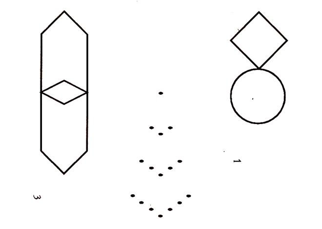 Зрительно-моторная координация развита слабо. Рисунки, в общем, похожи на образцы, но хотя бы один из них имеет серьезный дефект изображения, который не может быть объяснен просто неразвитостью графических навыков ребенка. К таким дефектам относятся: