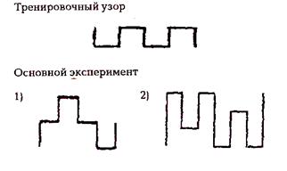 Во время работы над этим узором психолог ходит по рядам и исправляет допущенные детьми ошибки. При рисовании последующих узоров такой контроль снимается, и психолог следит только за тем, чтобы дети не переворачивали свои листочки и начинали узор с нужной точки. Диктуя, нужно соблюдать достаточно длинные паузы, чтобы дети успевали кончить предыдущую линию. На самостоятельное продолжение узора дается 1,5 — 2 минуты. Детей следует предупредить, что не обязательно занимать всю ширину страницы.
