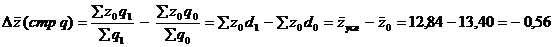 Если бы выпуск продукции по отдельным предприятиям оставался без изменения или изменился всюду пропорционально, т. е. если бы удельный вес каждого предприятия в выпуске продукции оставался неизменным, то тогда, очевидно, снижение средней себестоимости на 8,8% можно было бы объяснить только снижением себестоимости на каждом предприятии. Фактически же в нашем примере менялась не только себестоимость на каждом предприятии, но и удельный вес каждого предприятия в общем выпуске продукции. Следовательно, снижение средней себестоимости на 8,8% достигнуто за счет изменения двух факторов ( z и q).