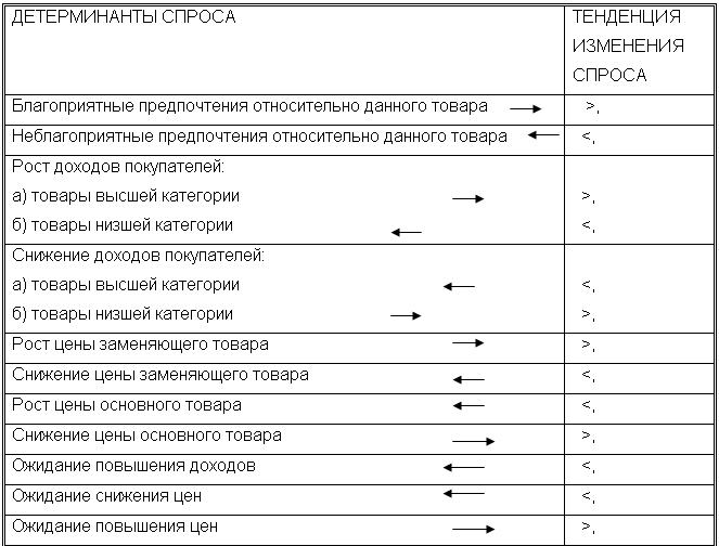 Влияние неценовых факторов на характер спроса рассмотрим в таблице 1.1.