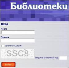 3. Откроется форма для ввода логина и пароля. Пароль и логин выдаются в отделе автоматизации Пермской краевой библиотеки им. Горького. Заполните строки «Почта» (в неё вводится логин) и «Пароль», введите код с картинки и нажмите кнопочку «Войти».