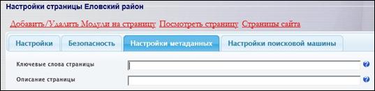 Зайдите во вкладку «Настройки метаданных», заполните строку «Ключевые слова страницы» (см. п. 9.3) и нажмите внизу кнопку «Готово».