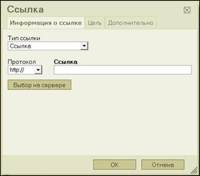 В открывшемся окошечке вставьте в строку под словом «Ссылка» скопированный ранее адрес и нажмите кнопку «ОК».