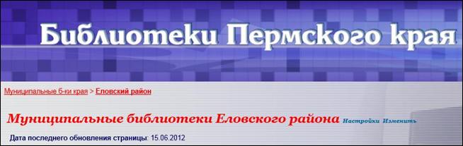НАПРИМЕР, модуль «Ведомственные библиотеки Соликамского района» первоначально будет создан для страницы, где собираются сведения обо всех библиотеках этого района, принадлежащих различным предприятиям и организациям (кроме библиотек учебных заведений – для них есть отдельные страницы). При этом названный модуль будет транслироваться и в раздел портала «Ведомственные библиотеки» (под тем же названием - «Ведомственные библиотеки Соликамского района»). И все дополнения, которые вы будете вносить в модуль на своей странице, автоматически будут появляться и в разделе «Ведомственные библиотеки». То же самое – с модулями «Школьные библиотеки Соликамского района», «Вузовские библиотеки Соликамского района», «Библиотеки средне-специальных заведений Соликамского района».