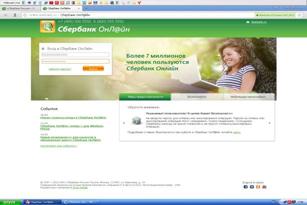 1. Войти на страничку банка: www. sbrf. ru (по вопросам входа в «СБЕРБАНК ОНЛАЙН» обращайтесь в свое отделение «СБЕРБАНКА»)