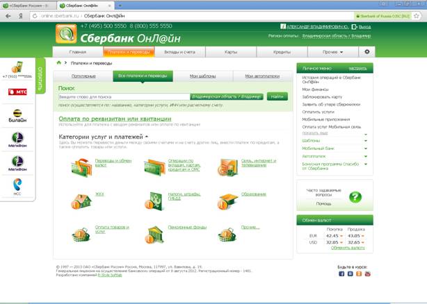 ПОРЯДОК ОПЛАТЫ ЧЕРЕЗ «СБЕРБАНК ОНЛАЙН»