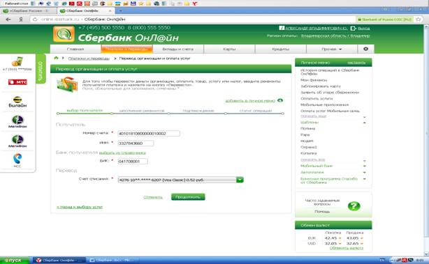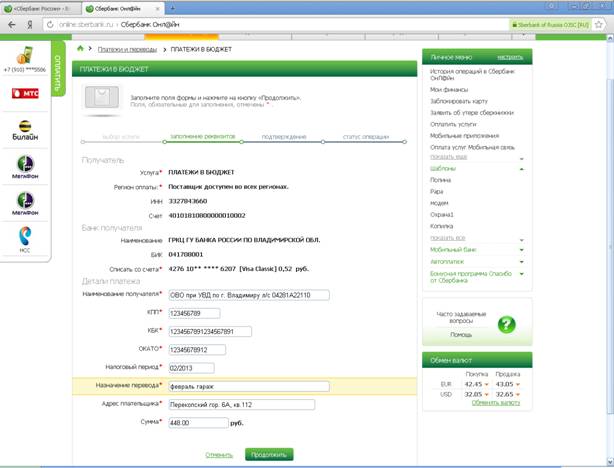 7. Заполнить реквизиты с квитанции, нажать «Продолжить».