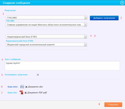 8) кнопка «Оправить» – по нажатию на данную кнопку осуществляется отправка сообщения указанным ранее получателям.