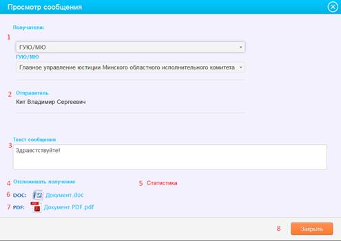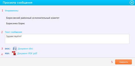 8) кнопка «Закрыть» – по нажатию на данную кнопку осуществляется закрытие формы просмотра сообщения.