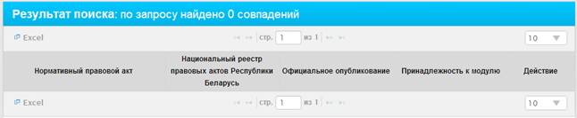 При отсутствии НПА, которые соответствуют параметрам поиска будет отображено соответствующее сообщение (Рисунок 10).